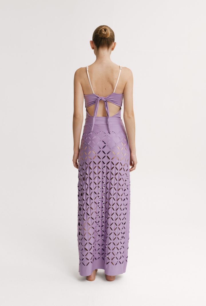 Skirt with laser-cut detailing and waistband. Perfect to layer over your bikini and transition effortlessly from day to night.