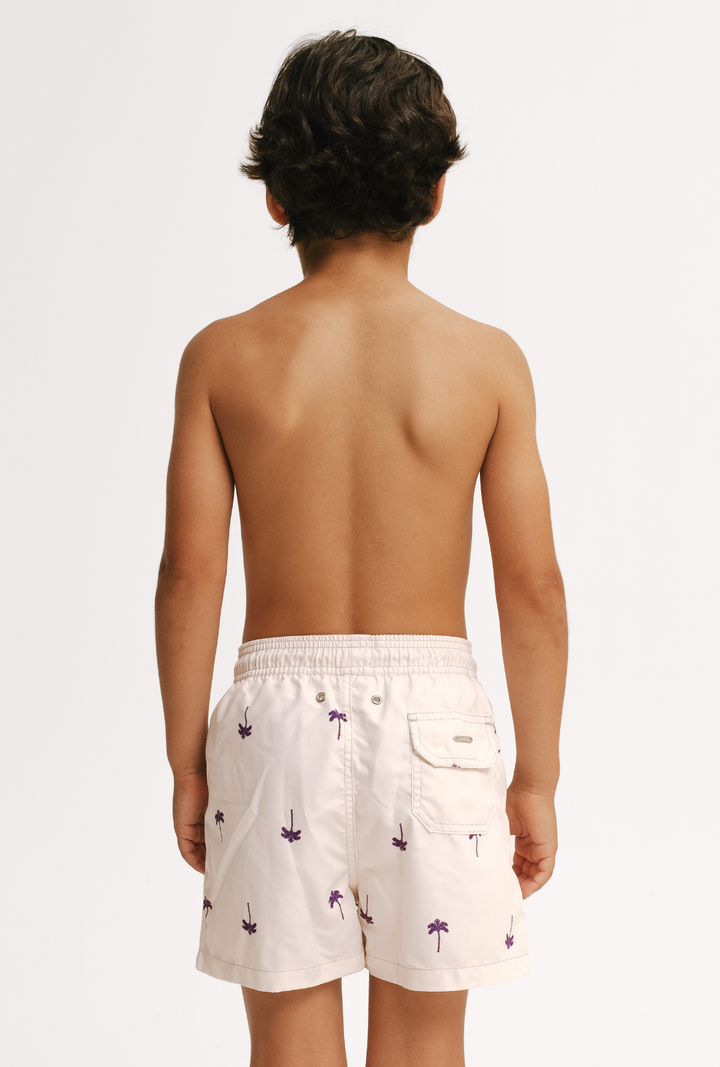 Boys’ swim shorts with an elastic waistband and adjustable drawstring for all-day comfort. Features a side zip pocket and a back pocket to carry small essentials at the beach or pool.