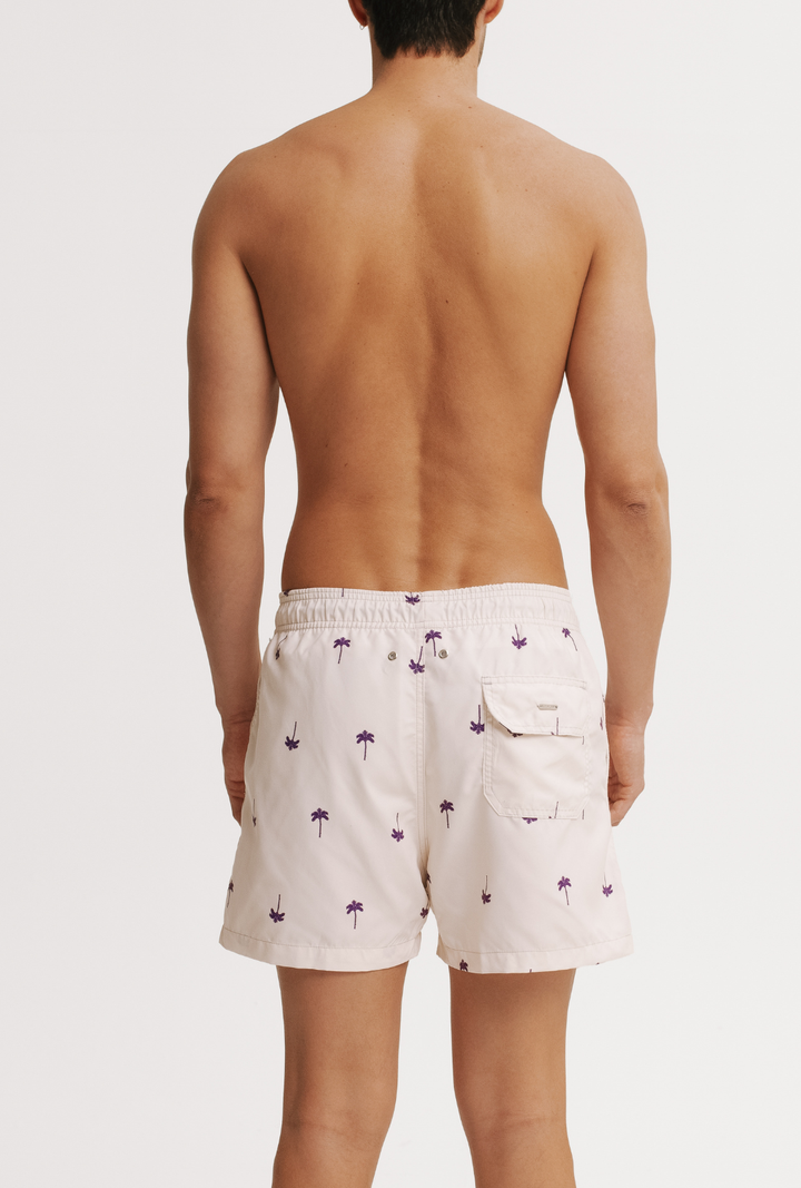 Men’s swim shorts with an elastic waistband and adjustable drawstring for a secure fit. Designed with a side zip pocket and a back pocket to keep your essentials close while you enjoy the beach or pool.